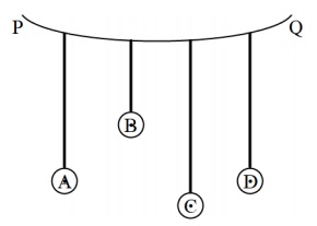 (i) Pendulums A, B, C and D are tied to a flexible string PQ and are at rest. Pendulum C is disturbed. Which of the following statements is true?