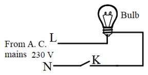 (ii) (a) Observe the diagram given below and state whether the bulb will glow or not when we switch on K.