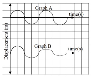(i) (a) Which one of the following graphs A or B shows free vibrations in vacuum and which one shows free vibrations in a medium?